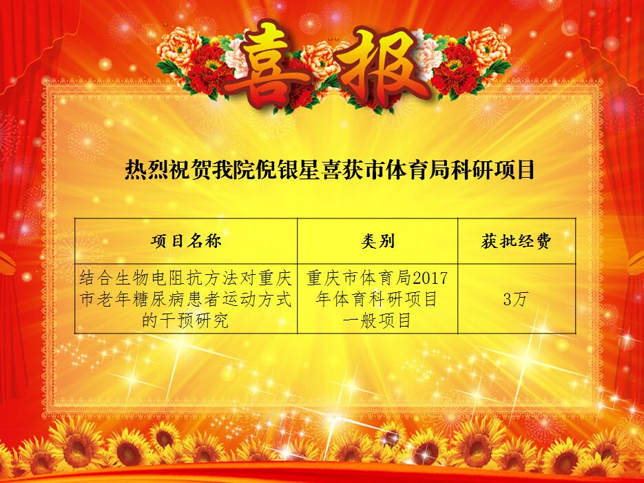 【喜讯】热烈祝贺我院倪银星喜获市体育局科研项目