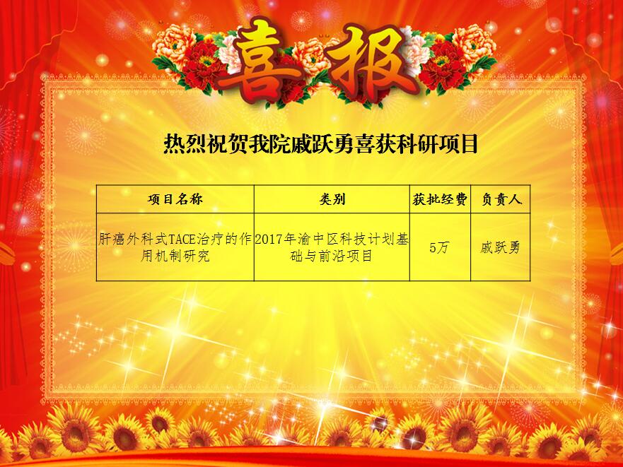 【喜讯】我院放射科副主任戚跃勇喜获科研项目