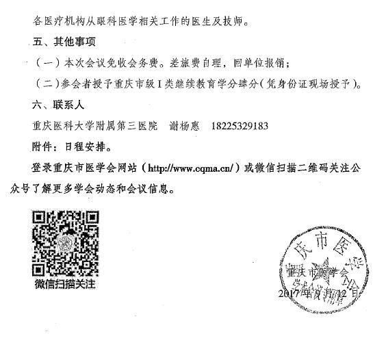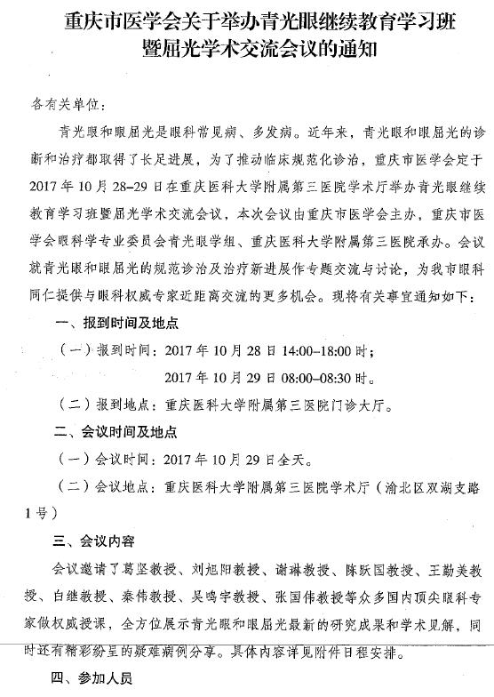 重庆市医学会关于举办青光眼继续教育学习班暨屈光学术交流会议的通知