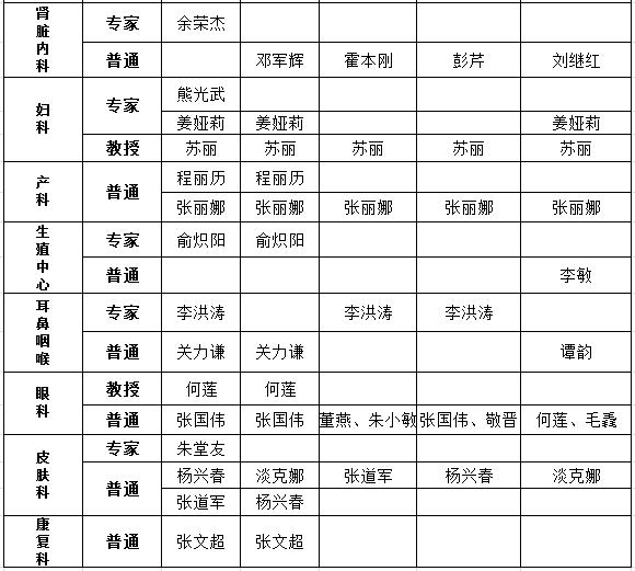清明节假日期间门诊出诊医生安排表