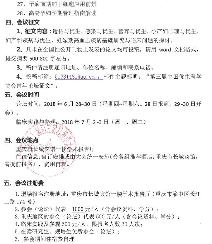 【学术会议】第三届中国优生科学协会青年论坛第四届基因诊断学和精准医学论坛暨首届妇产科疾病与优生、妊娠期高血压疾病基础与临床新进展巴渝论坛(国家级继续教育项目)