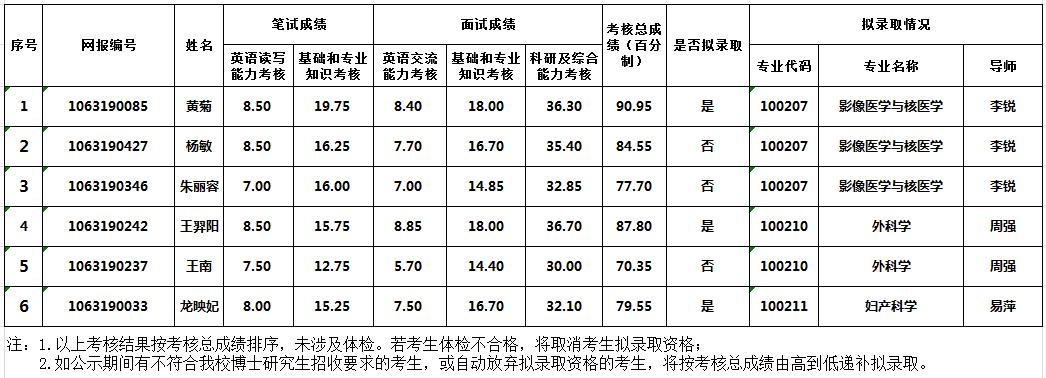 【博士研究生招生】重庆医科大学第三临床学院2019年博士研究生招生“申请—考核”制考核结果公示