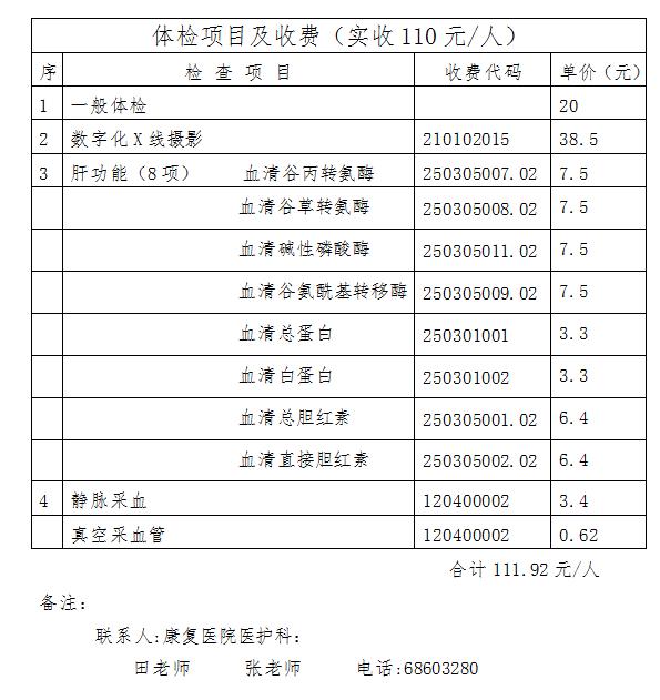 附属康复医院大公馆分院 | 体检(具体要求见附件1) 放射检查可延长至16:30 |