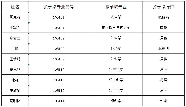 重庆医科大学第三临床学院2019年在职医师申请临床医学、口腔医学博士专业学位人员拟录取名单公示