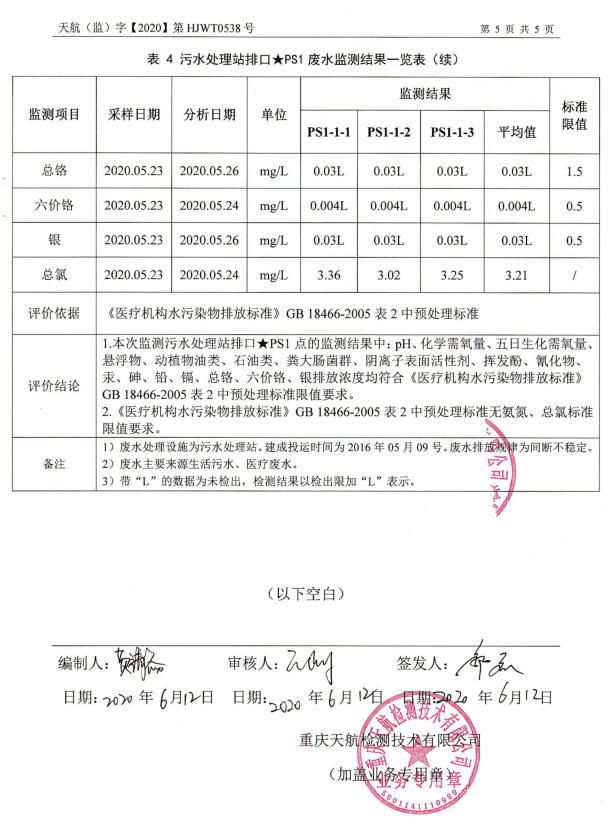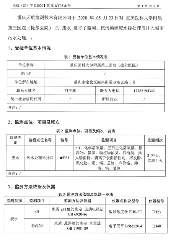重医大附三院天航检测技术有限公司监测报告