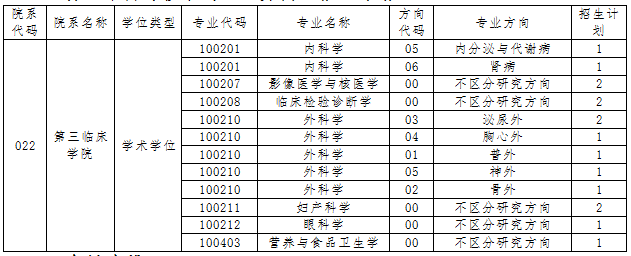 (3)每名考生先后有两次申请同一专业招生方向和院系调整的机会,每次申请后须重新参加复试。考生每次申请调整的志愿与前一轮复试选择的志愿必须不同,可以是招生方向不同或者是院系不同或是招生方向、院系均不同。(例如考生第一轮复试在第一临床学院内科学(消化系病)复试,未被拟录取后可选择第一临床学院内科学(呼吸系病),可选择第二临床学院内科学(消化系病),也可选择第四临床学院内科学(心血管病)…)。
