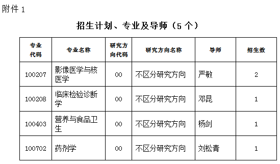 1.招生计划:5名。优先考虑重庆医科大学及其附属医院(含直管、非直管)职工。