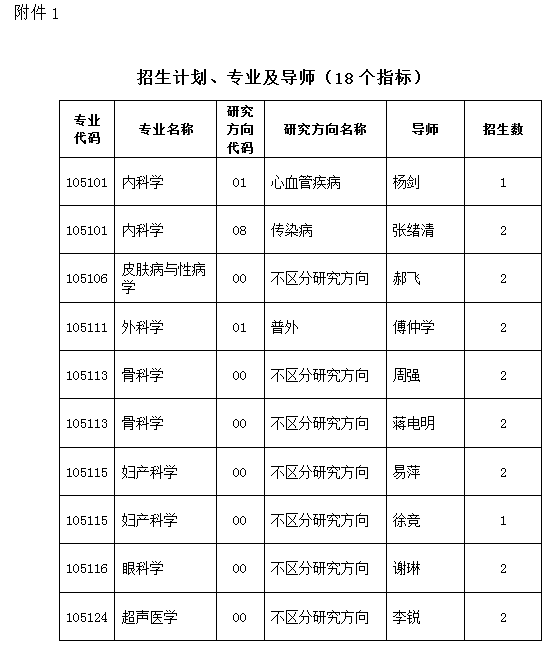 1.招生计划:18名。优先考虑重庆医科大学及其附属医院(含直管、非直管)职工。