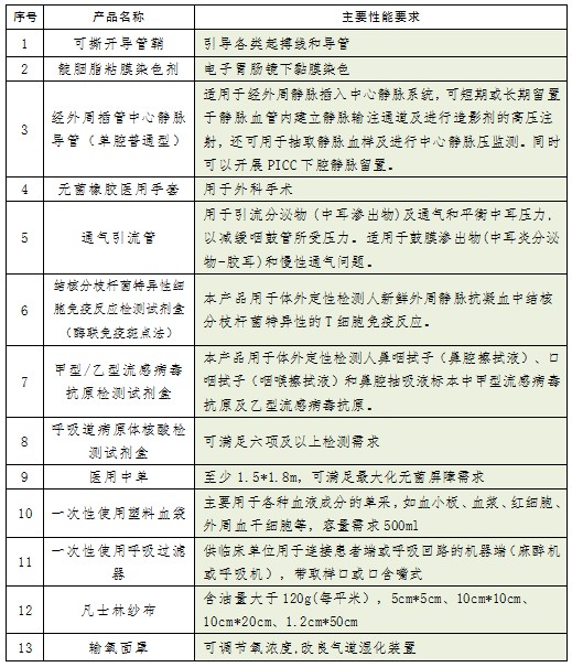 三、拟采购医用耗材,其主要用途和要求如下: