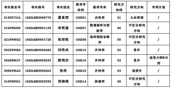 重庆医科大学第三临床学院2024年硕士研究生复试考生名单与复试安排公告(第一志愿)