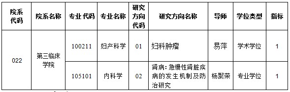 重庆医科大学第三临床学院博士第二轮招生指标情况一览表