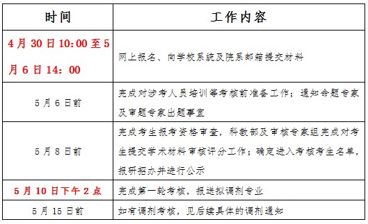 考核内容主要包括英语水平、基础和专业知识、科研及综合能力考核。每生考核时间一般不少于30分钟。