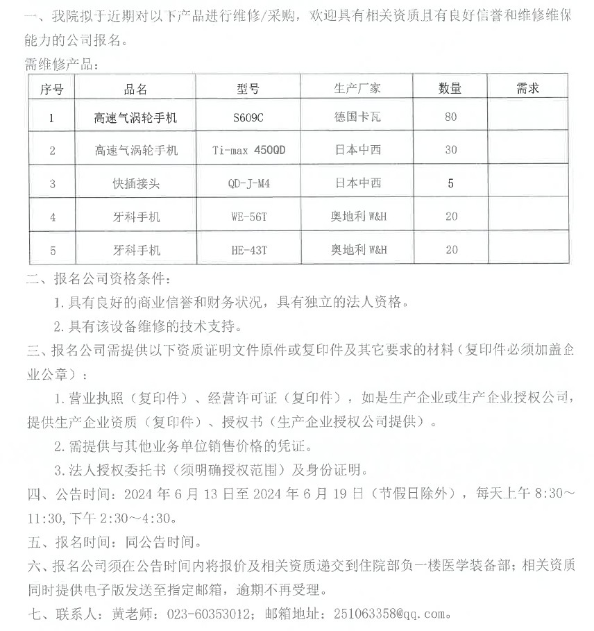 2026.01.062026年设备维修需求公告 -01- 电子腹腔镜维修