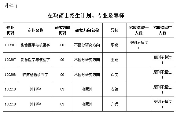 报考本学院的考生,按考生来源不同,分为两类:类型一为重庆医科大学及直属附属医院在岗职工;类型二为重庆医科大学系统以外单位。