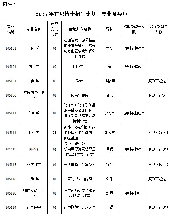 1.在职医师申请临床医学博士专业学位人员不得转为统招全日制博士研究生。