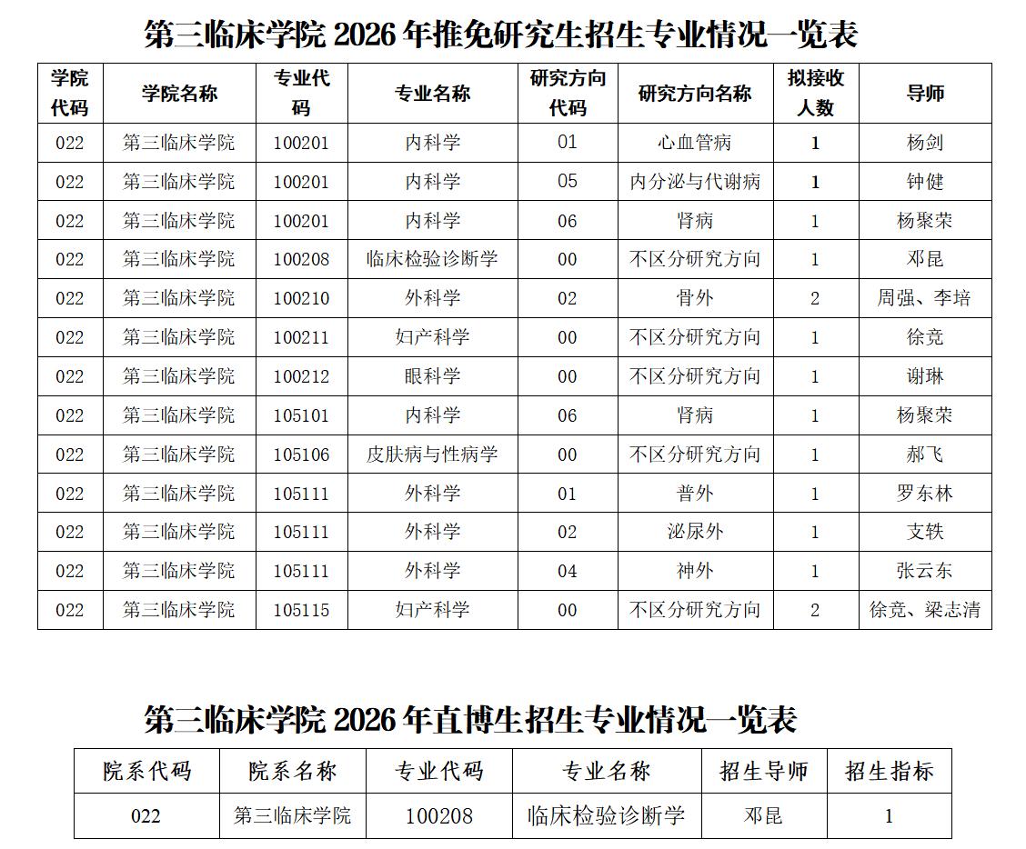 重庆医科大学第三临床学院 2026年推免研究生及直博生招生复试录取办法