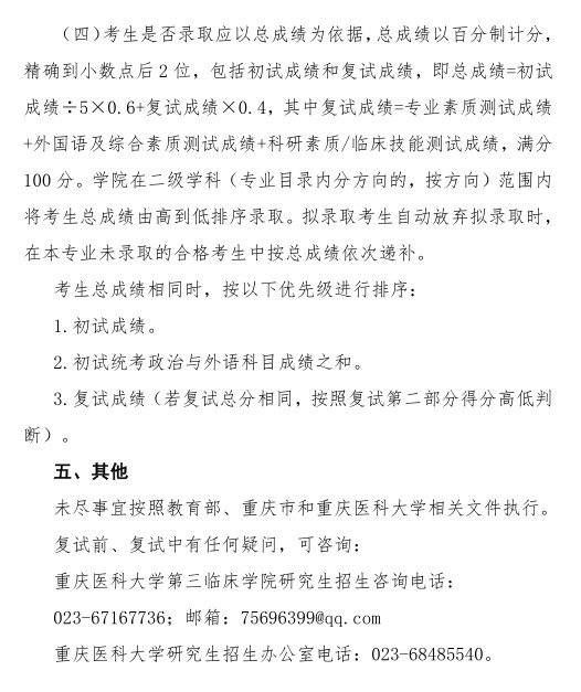 2026.04.02重庆医科大学第三临床学院2026年硕士研究生校内调整复试安排公告