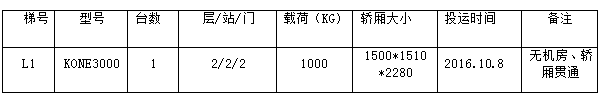1.电梯品牌数量:通力电梯1台
