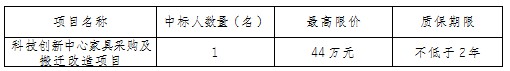 2024-04-19 17:21因我院科技创新中心装修建设需要,现需采购一批教学实验家具及对原家具进行搬迁改造,现公开招标,欢迎符合资格条件的商家报名。
