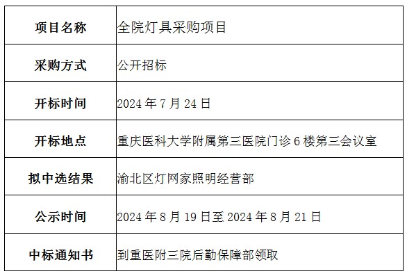 2025.12.20重庆医科大学附属第三医院(方大医院) 共享充电宝摆放服务项目中选结果公示
