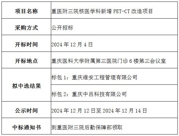 重医大附三院核医学科新增 PET-CT改造项目中标结果公示