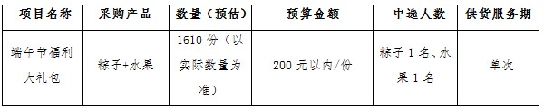 2025-04-22 10:10端午节即将来临,为表达对医院职工的关怀,让职工在节日里感受到传统佳节的氛围与温暖,现组织本次端午节福利采购项目,对大礼包(粽子和水果)进行公开比选,欢迎有资格的竞选人参加比选。