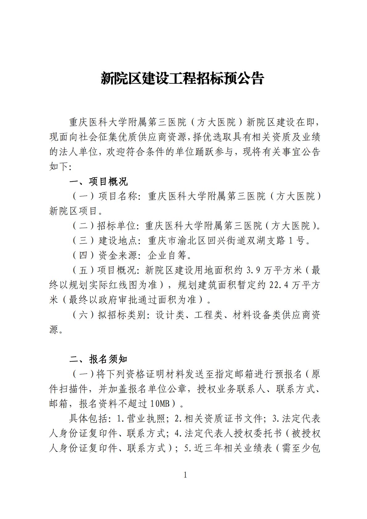 新院区建设工程招标预公告