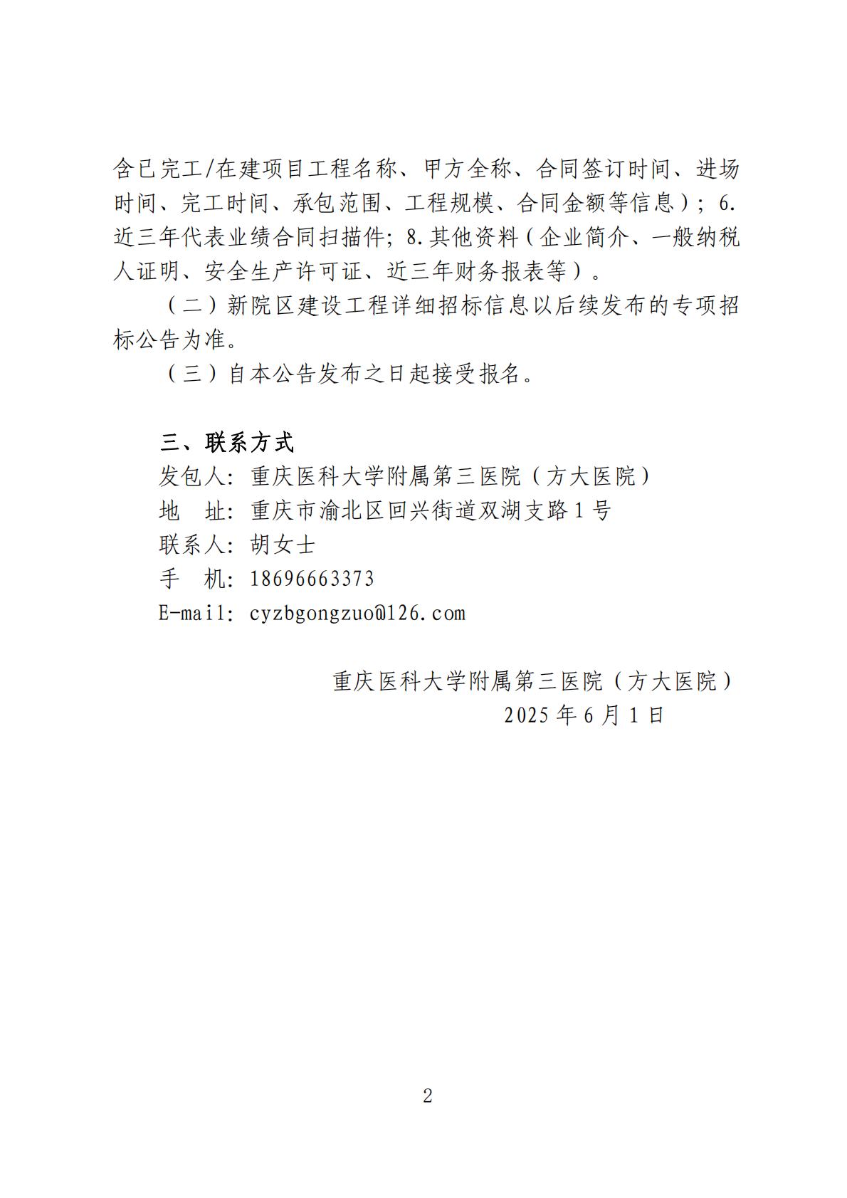 2025.12.30重医大附三院(方大医院)扩建工程门窗、幕墙等外装工程第二次公开比选公告