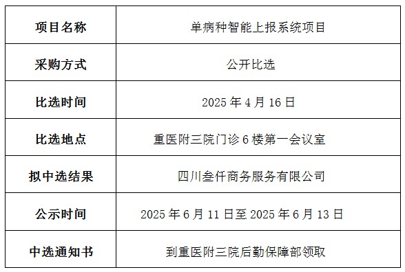 重医大附三院 (方大医院)单病种智能上报系统项目中选结果公示