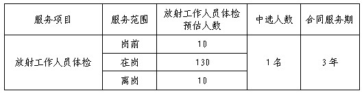 (一)项目名称:放射工作人员(岗前、在岗、离岗)体检项目