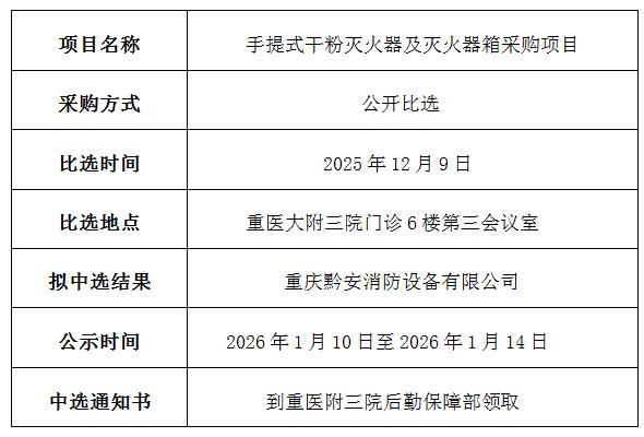 重医大附三院(方大医院)手提式干粉灭火器及灭火器箱采购项目中选结果公示