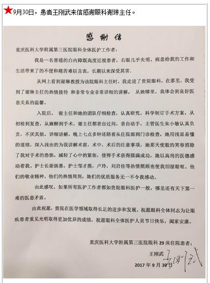 患者王刚武的感谢信-感谢信-患者心声-患者服务-重庆医科大学附属第三医院【官方网站】