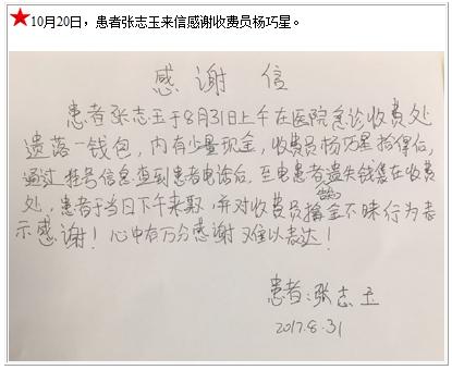 患者张志玉的感谢信