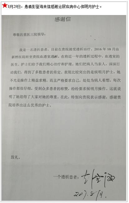 患者彭登海的感谢信-感谢信-患者心声-患者服务-重庆医科大学附属第三医院【官方网站】