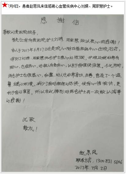 患者赵思凤的感谢信