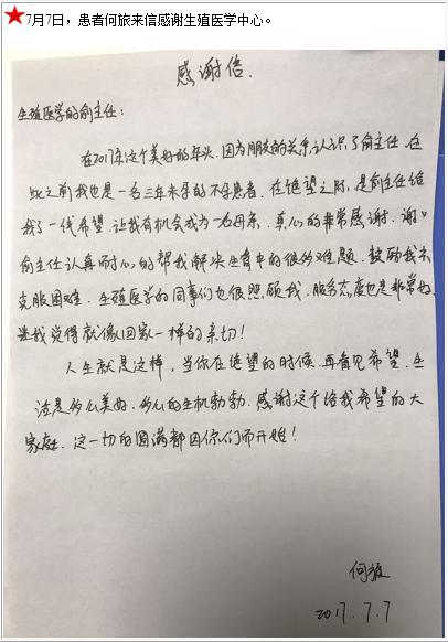 患者何旅的感谢信