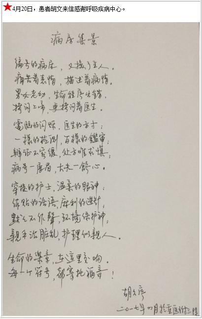 胡文的感谢信-感谢信-患者心声-患者服务-重庆医科大学附属第三医院【官方网站】