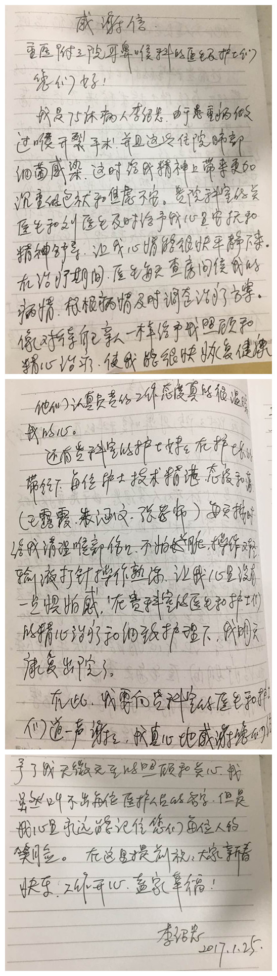 患者李绍忠的感谢信