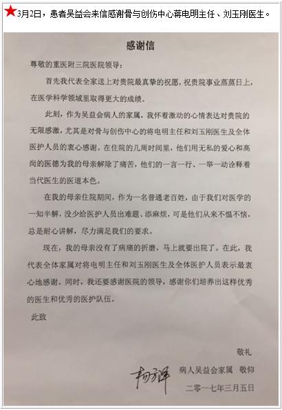 吴益会的感谢信-感谢信-患者心声-患者服务-重庆医科大学附属第三医院【官方网站】