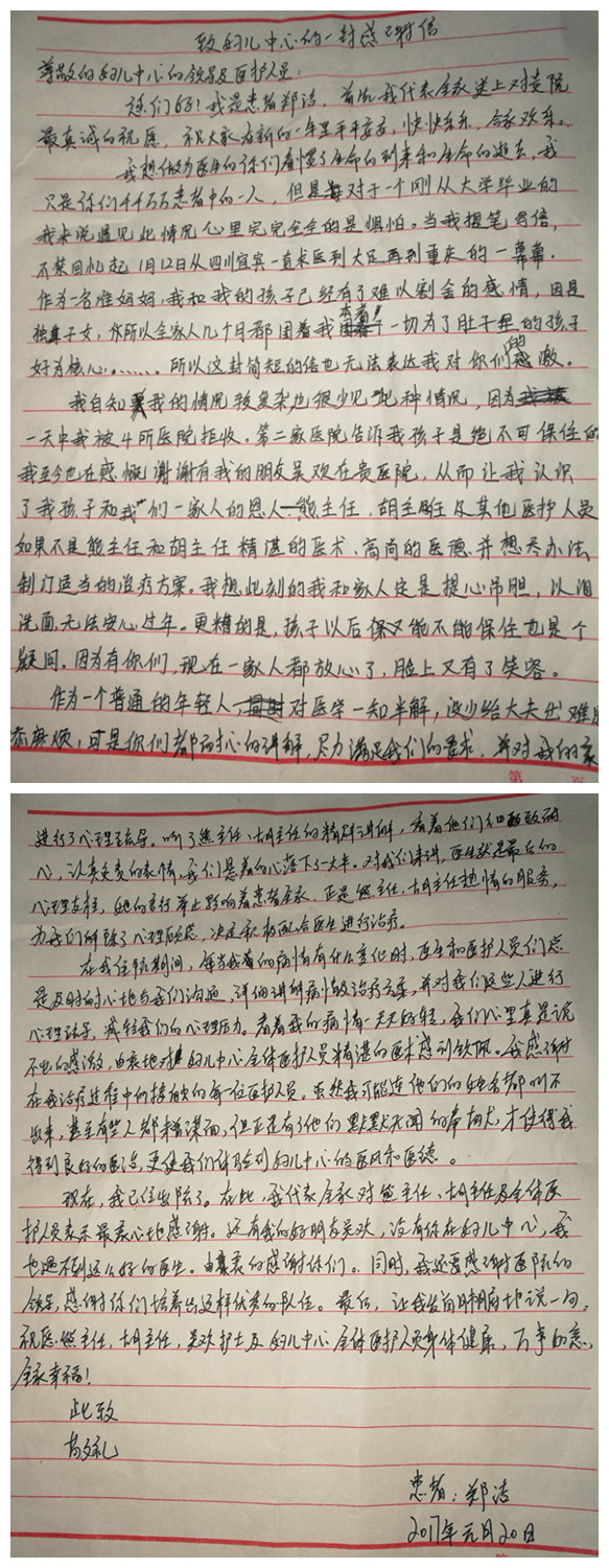 郑洁的感谢信-感谢信-患者心声-患者服务-重庆医科大学附属第三医院【官方网站】