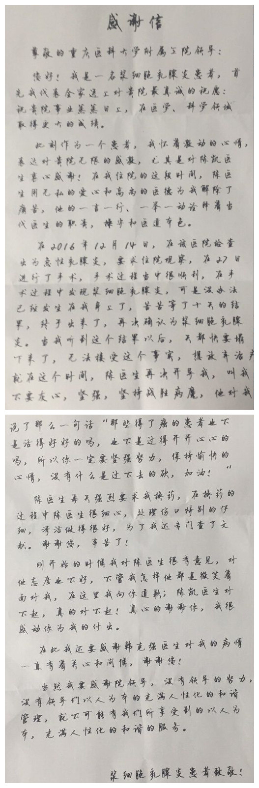 浆细胞乳腺炎患者的感谢信-感谢信-患者心声-患者服务-重庆医科大学附属第三医院【官方网站】