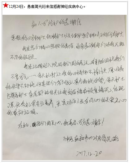 患者简光珩的感谢信