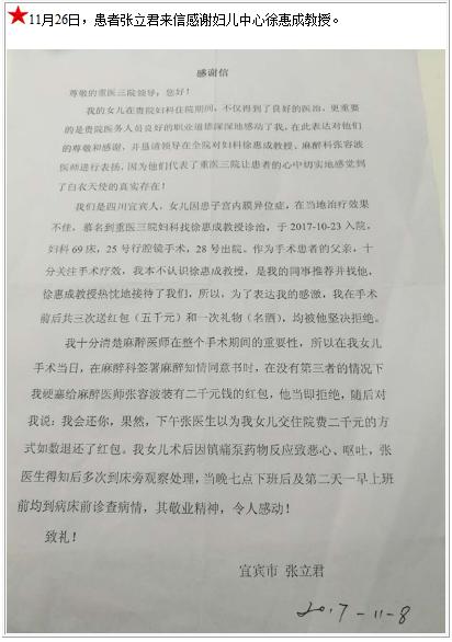 患者张立君的感谢信-感谢信-患者心声-患者服务-重庆医科大学附属第三医院【官方网站】