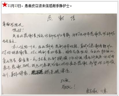患者皮召淑的感谢信