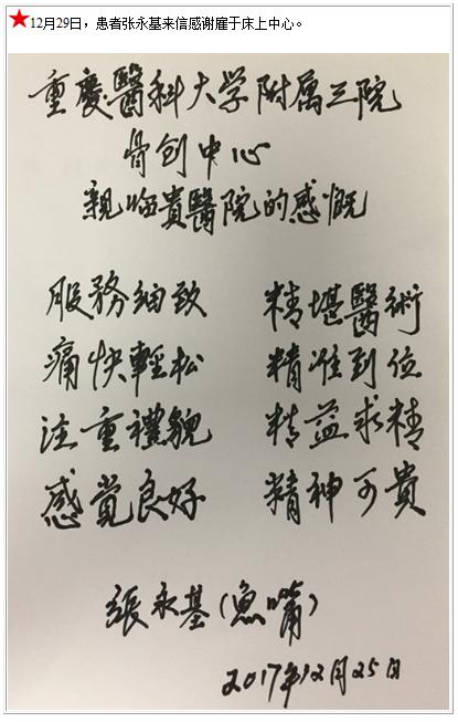 患者张永基的感谢信-感谢信-患者心声-患者服务-重庆医科大学附属第三医院【官方网站】