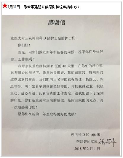 患者李廷碧的感谢信-感谢信-患者心声-患者服务-重庆医科大学附属第三医院【官方网站】