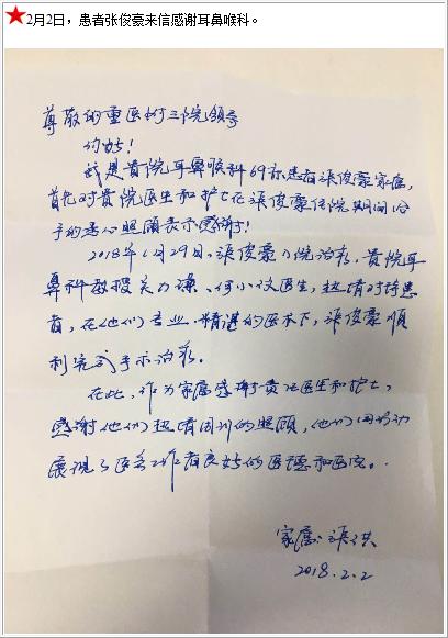 患者张俊豪的感谢信-感谢信-患者心声-患者服务-重庆医科大学附属第三医院【官方网站】