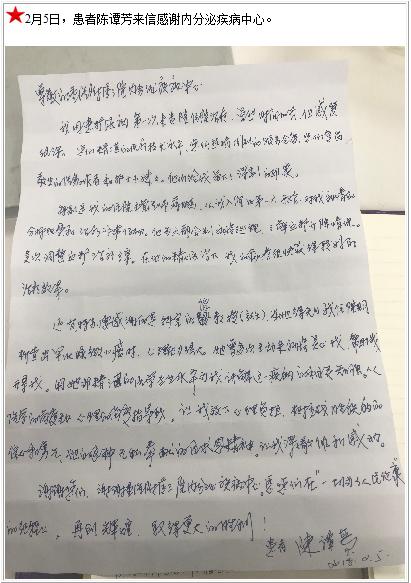 患者陈谭芳的感谢信