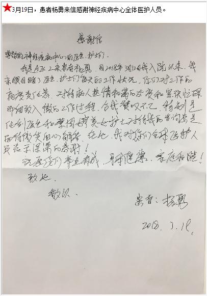 患者杨勇的感谢信