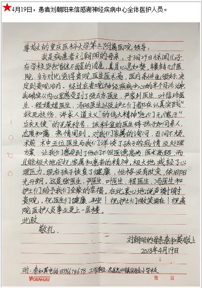 患者刘朝阳的感谢信-感谢信-患者心声-患者服务-重庆医科大学附属第三医院【官方网站】
